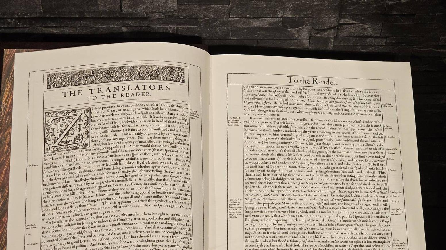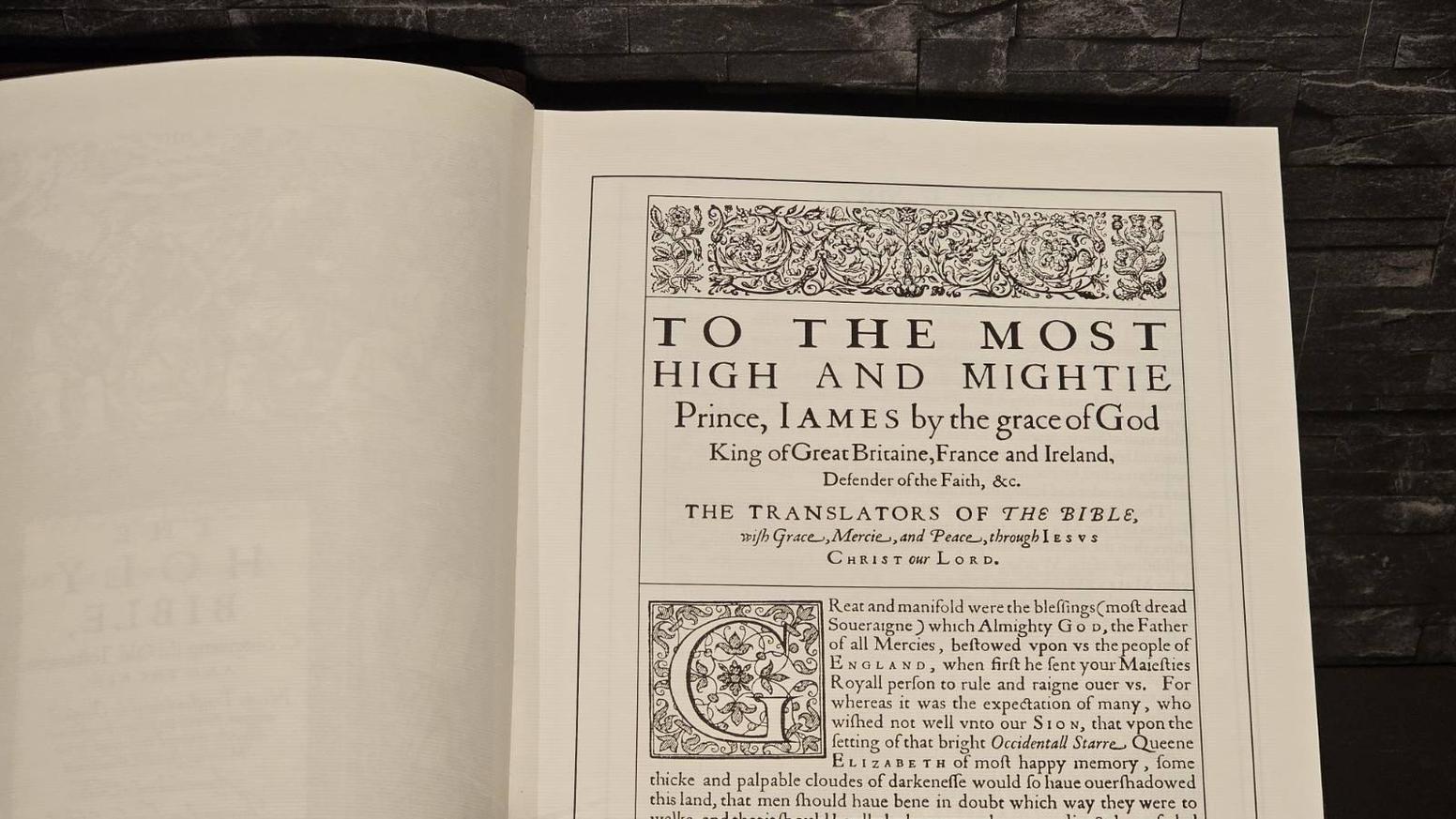 There are infinite arguments of this right Christian and Religious affection in your MAIESTIE: but none is more forcible to declare it to others, then the vehement and perpetuall desire of the accomplishing and publishing of this Worke, which now with all humilitie we present unto your MAIESTIE. For when your Highnesse had once out of deepe iudgement apprehended, how convenient it was, That out of the Originall sacred tongues, together with comparing of the labours, both in our owne, and other forraine Languages, of many worthy men who went before us, there should bee one more exact Translation of the holy Scriptures into the English Tongue; your Maiestie did never desist to urge and to excite those to whom it was commended, that the worke might bee hastened, and that the businesse might bee expedited in so decent a maner, as a matter of such importance might iustly require.